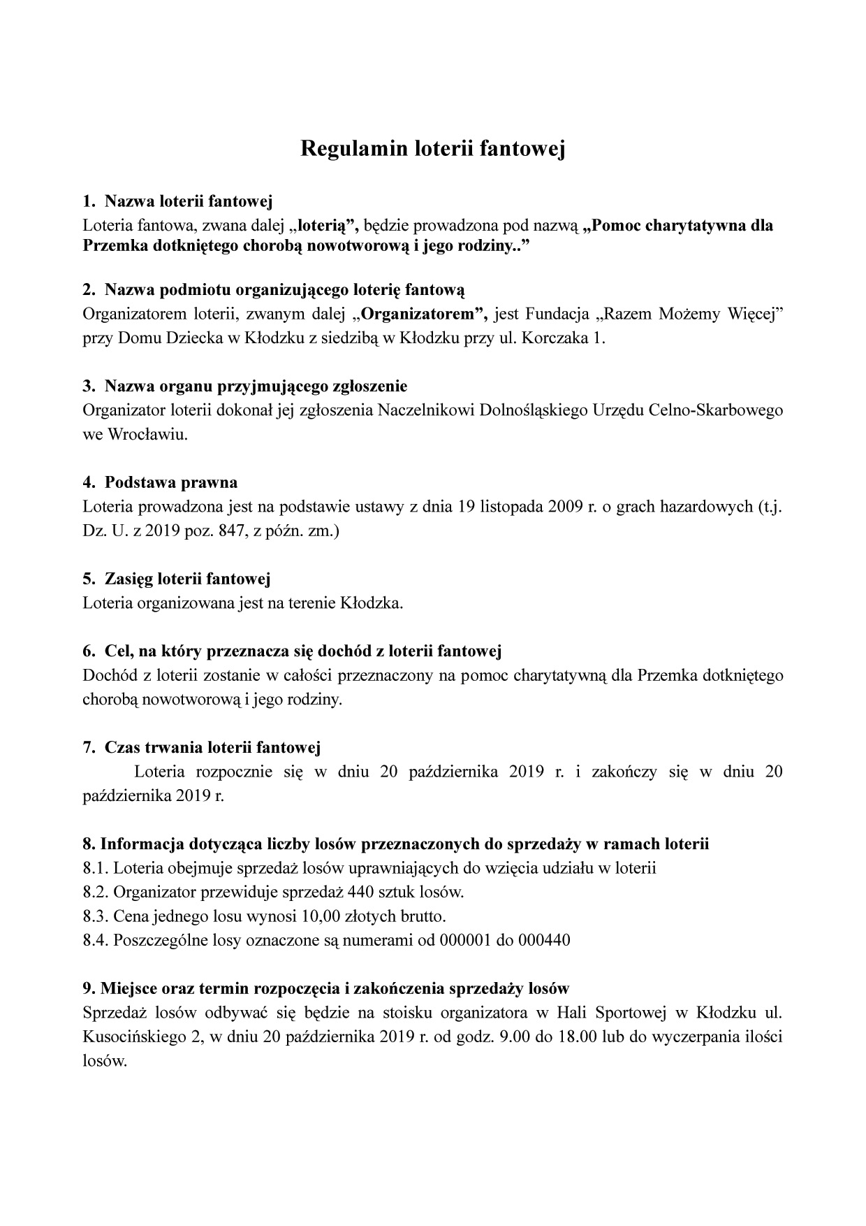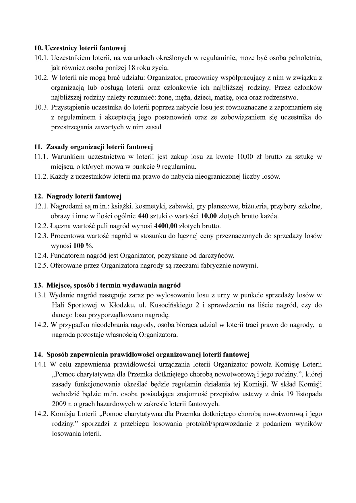 W czasie imprezy odbędzie loteria fantowa. Każdy los za 10 zł wygrywa. Każda wygrana nagroda przekracza 10 zł. Regulamin poniżej.