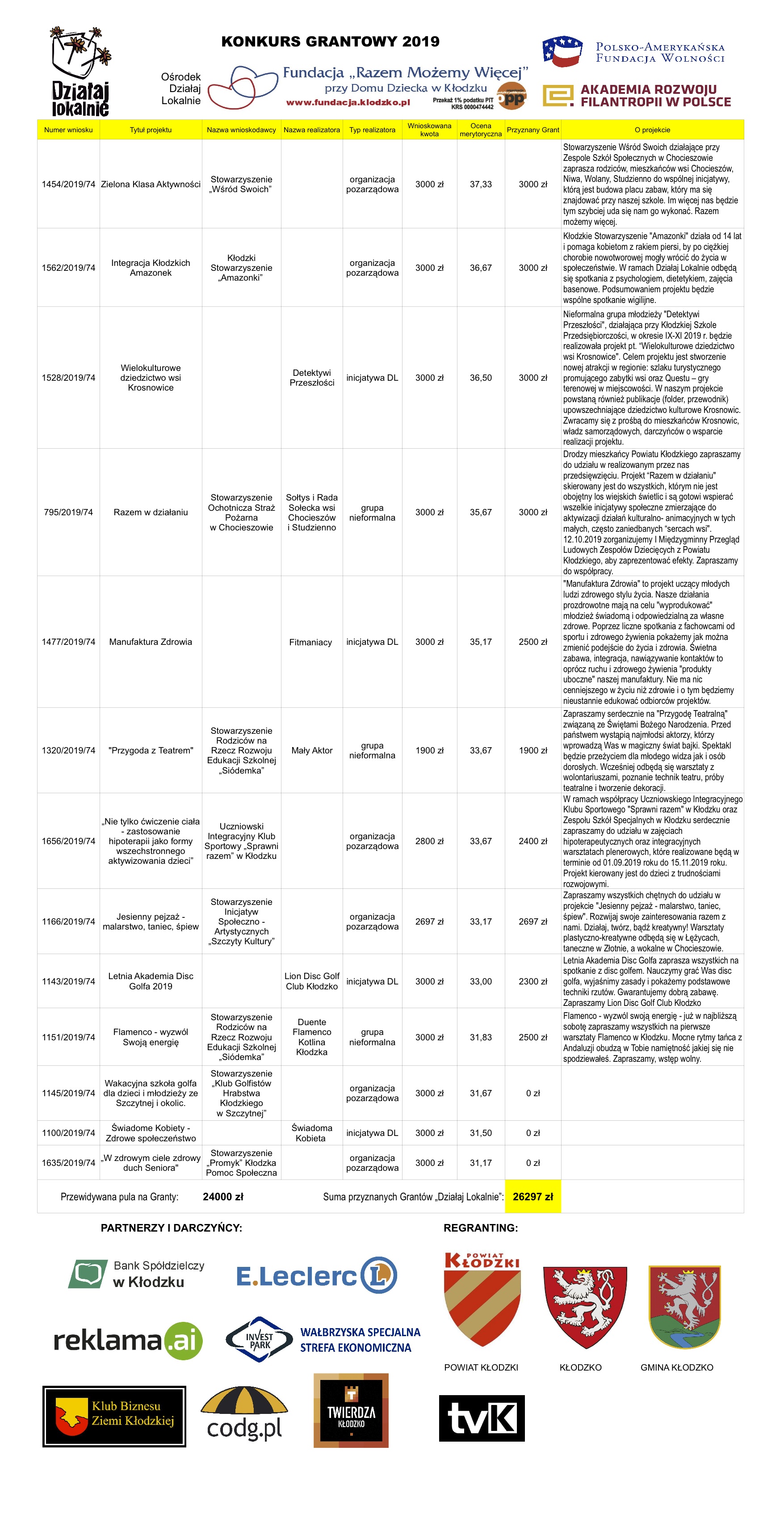 W tym roku przewidziana pula na granty wynosi: min. 24.000 zł