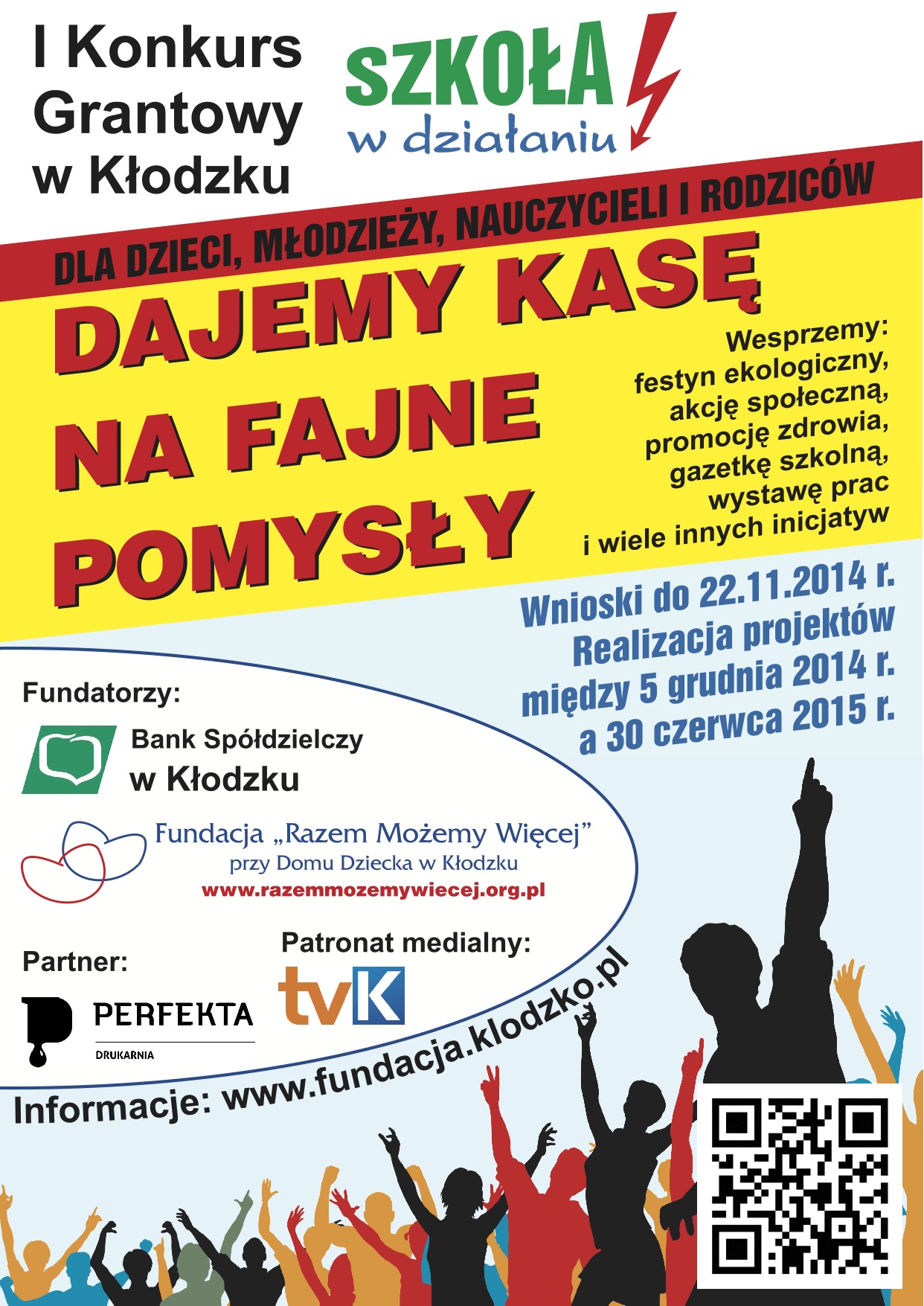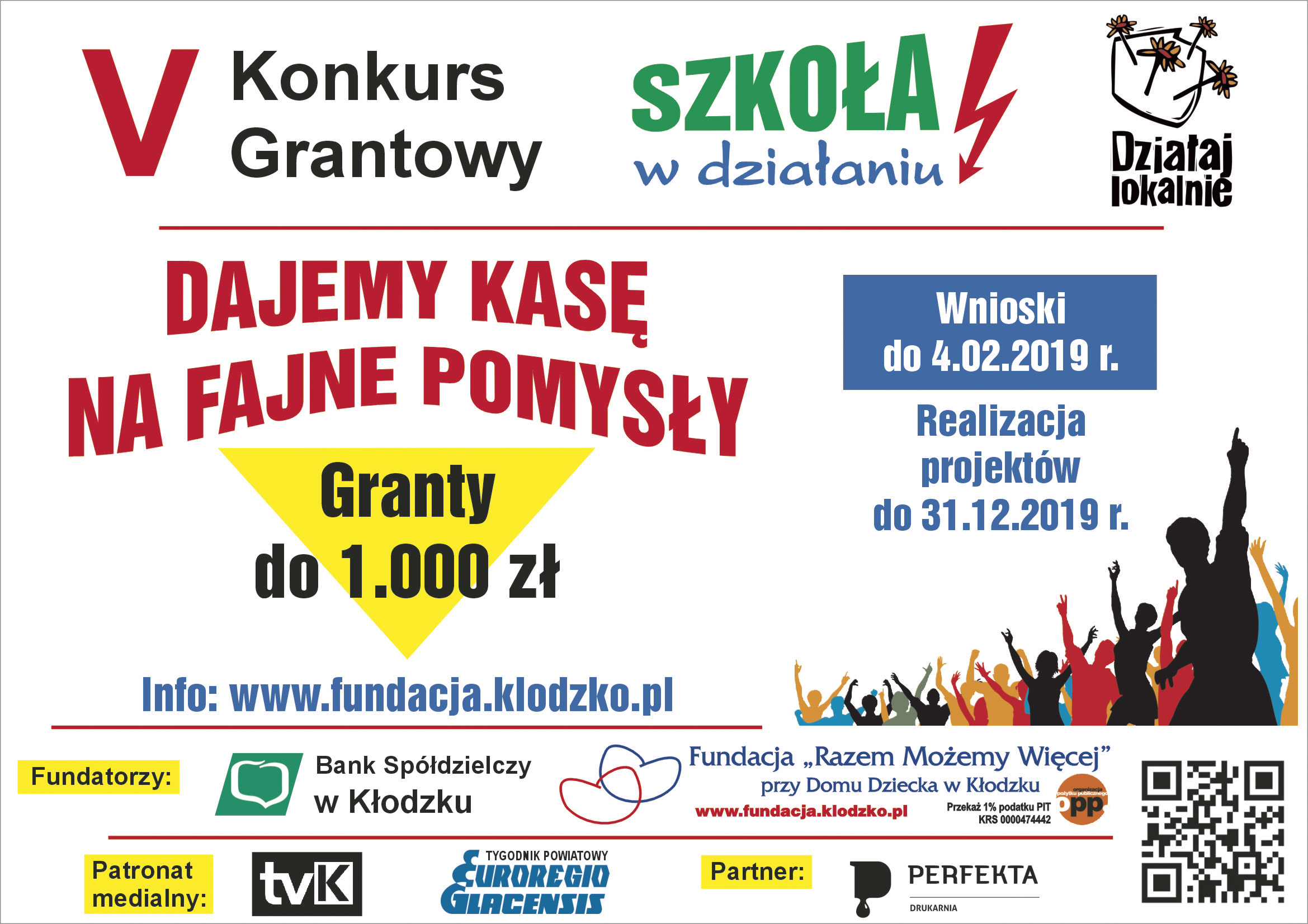 11 stycznia 2017 r. w auli Domu Dziecka w Kłodzku odbyła się uroczystość rozdania grantów w ramach III Konkursu Grantowego „Szkoła w działania”. W konkursie na „fajne pomysły” realizowane przez grupy nieformalne działające przy kłodzkich szkołach można było otrzymać finansowanie do 1.000 zł.