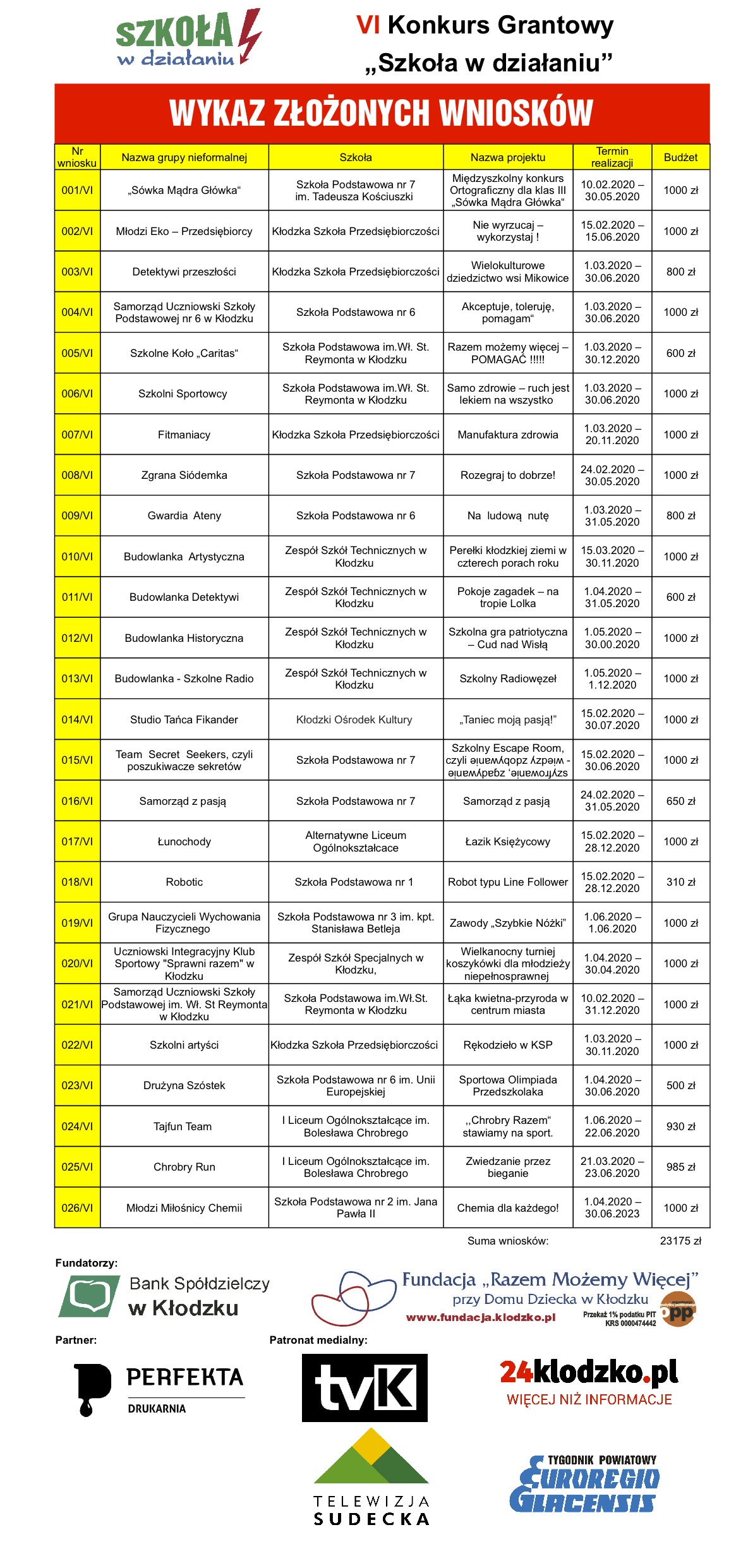 Najwięcej grantów – 4 – trafi do grup działających przy Kłodzkiej Szkoły Przedsiębiorczości.