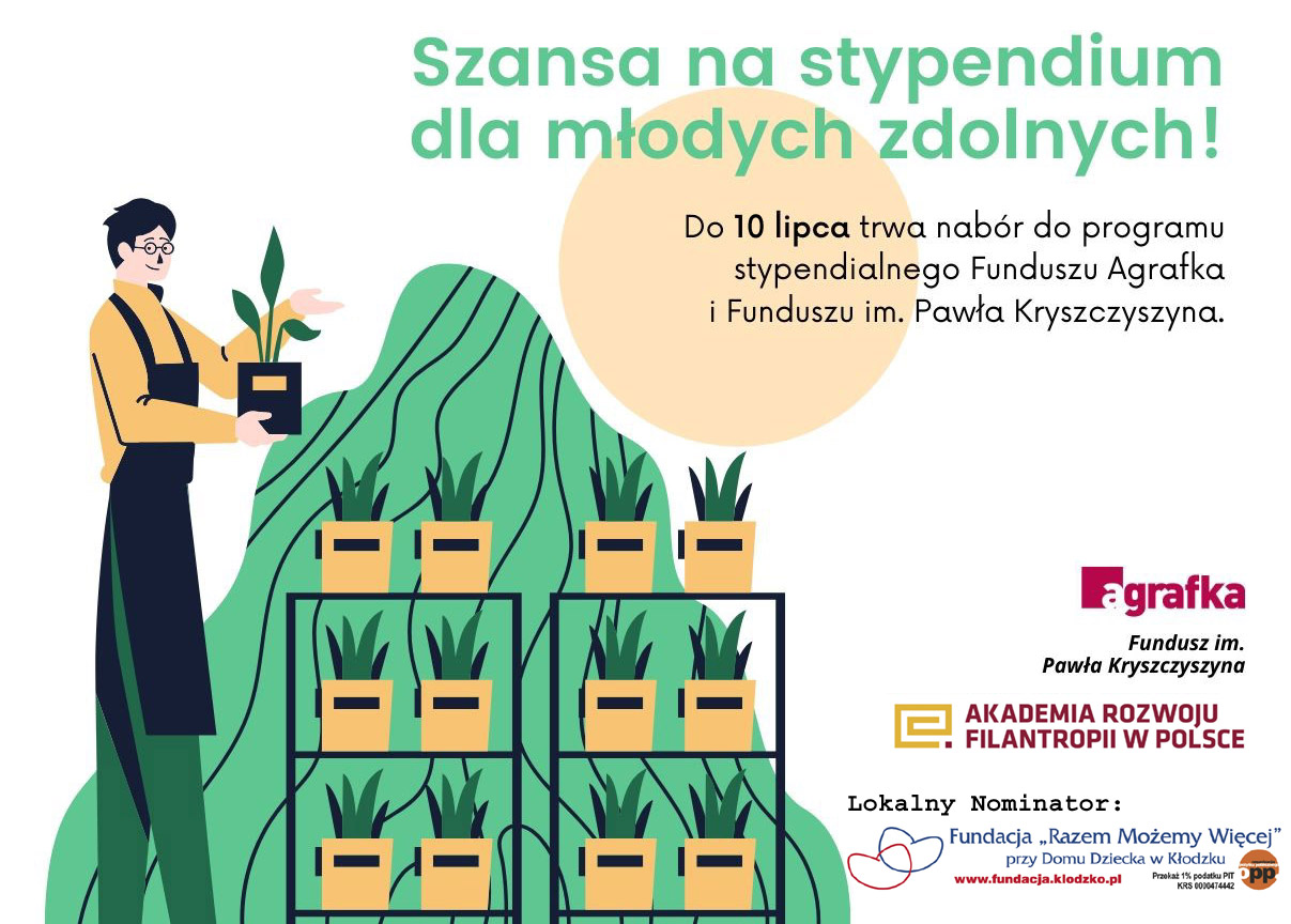 Młodzi i zdolni po raz kolejny mają szansę na zdobycie stypendium w wysokości do 300 zł miesięcznie w ramach Programu Stypendialnego 2020/2021 Funduszu Agrafka i Funduszu im. Pawła Kryszczyszyna.