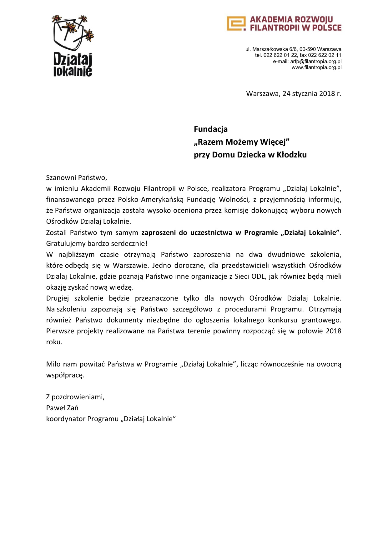 Znaleźliśmy się w gronie 72 najlepszych (na dzień dzisiejszy) w Polsce organizacji,